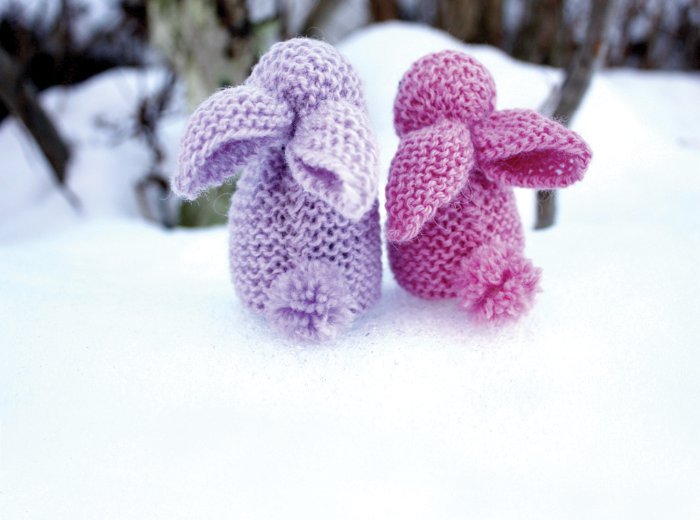 Legg opp 30 masker og strikk rillestrikk (rett) til det blir et kvadrat. Med 30 masker blir påskeharen ca. 10 cm høy. Det er en fin størrelse.