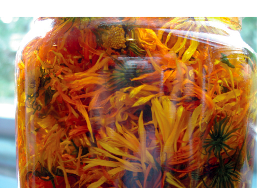 De vakre blomsterhodene kan enda plukkes i mange uker fremover – noen år kan ringblomstene stå i blomst til like før jul. Ferske ringblomstblader egner seg fint til å pynte opp i en salat eller som kakedekorasjon. Under plukkingen blir hendene mer og mer klebrig og klissete fra den melkeaktige plantesaften i stengelen, og den særegne lukten brer seg rundt plantene. Vi må også se opp for biene, da disse blir tiltrukket av blomstenes kraftige farger. Ringblomsthodene legges nå et par døgn i tørkeskapet til de er helt tørre. Oppbevaringen må skje på et mørkt og tørt sted for at blomstene ikke skal trekke til seg rommets fuktighet og begynne å mugne. En del av de tørkede blomstene vil senere bli blandet inn i skolens «Universal-te», og kanskje til og med i skolens urtesalt. En annen del legges i store Norges-glass som blir fylt opp med god økologisk oliven- eller mandelolje. Glassene plasseres i vinduskarmen ved siden av andre glass som allerede er fylt med rose-, lavendel- og perikumblomst eller en blanding av rosmarin- og bjørkeblader. Glassene står der i 4–5 uker før blomstene og bladene blir silt fra. De har nå gitt sine verdifulle «gaver» videre til oljen. Calendula inneholder bl.a. karotinoider, flavonoider, saponiner og eteriske oljer, bitterstoffer, steroider m.m. Disse stoffene bidrar til at sår gror raskere, de er betennelseshemmende, kan hjelpe mot eksem, såre babyrumper, tørre og oppsprukne hender og lepper… og jeg kunne fortsatt i det uendelige.